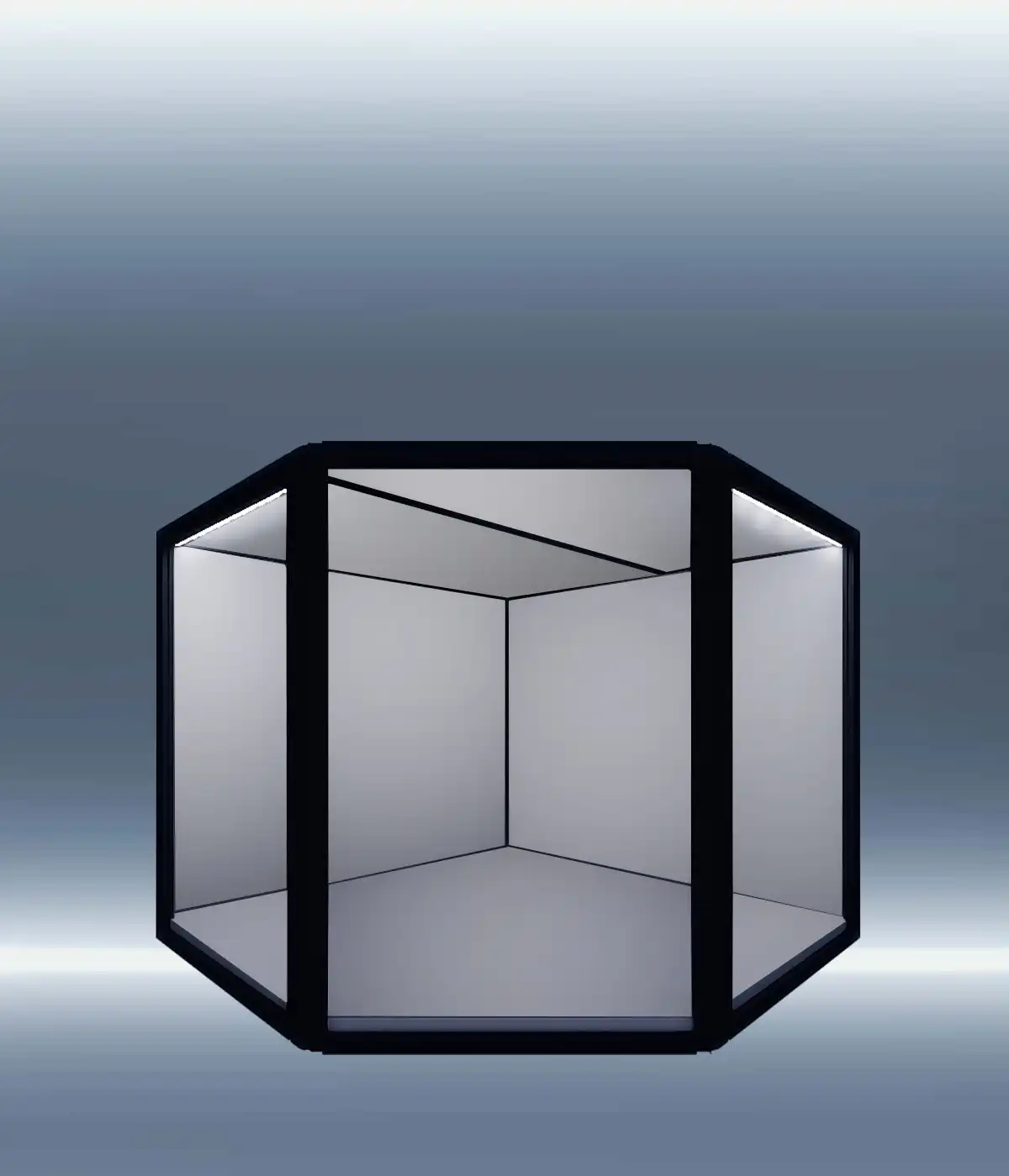 Moducase Max850 Plus Corner Black Frame Black Felt Base And Interior with Pure or Warm White LED Strip Lights or LED Spot Lights